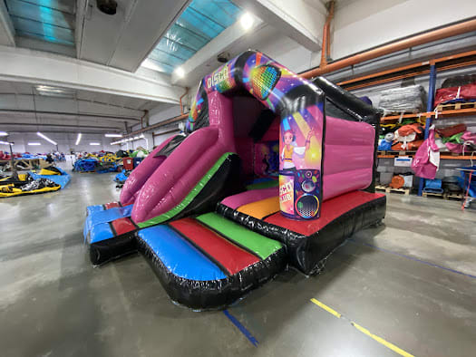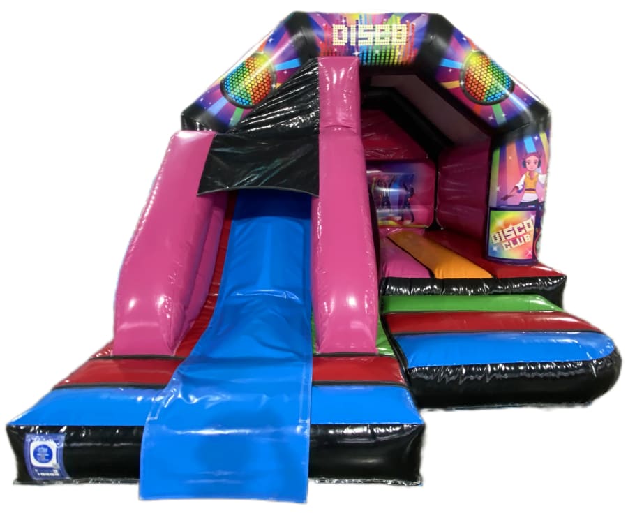 A&S Entertainments provides 15x12ft Disco Front Slide Combi hire across Essex, Hertfordshire and North London — bounce, slide and music all in one.
