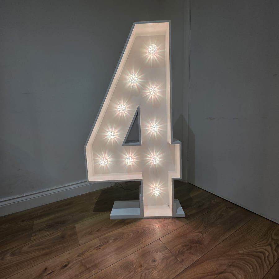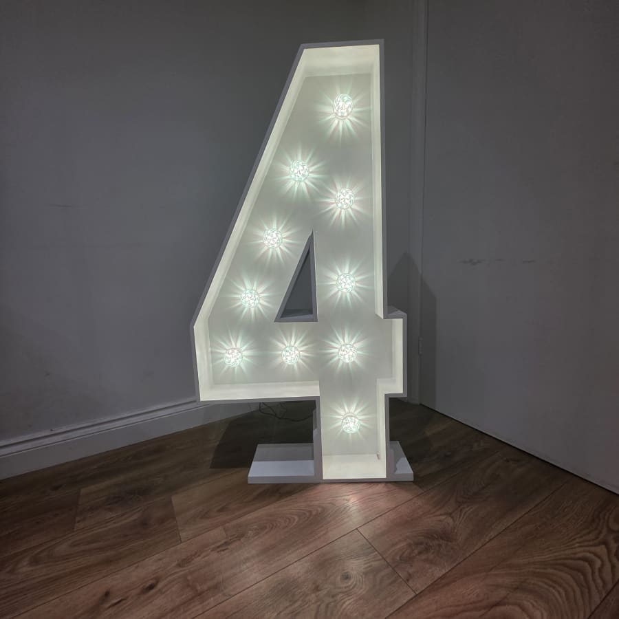 The 4ft LED Number 4 at A&S is ideal for weddings, birthdays, and parties needing a striking centrepiece.