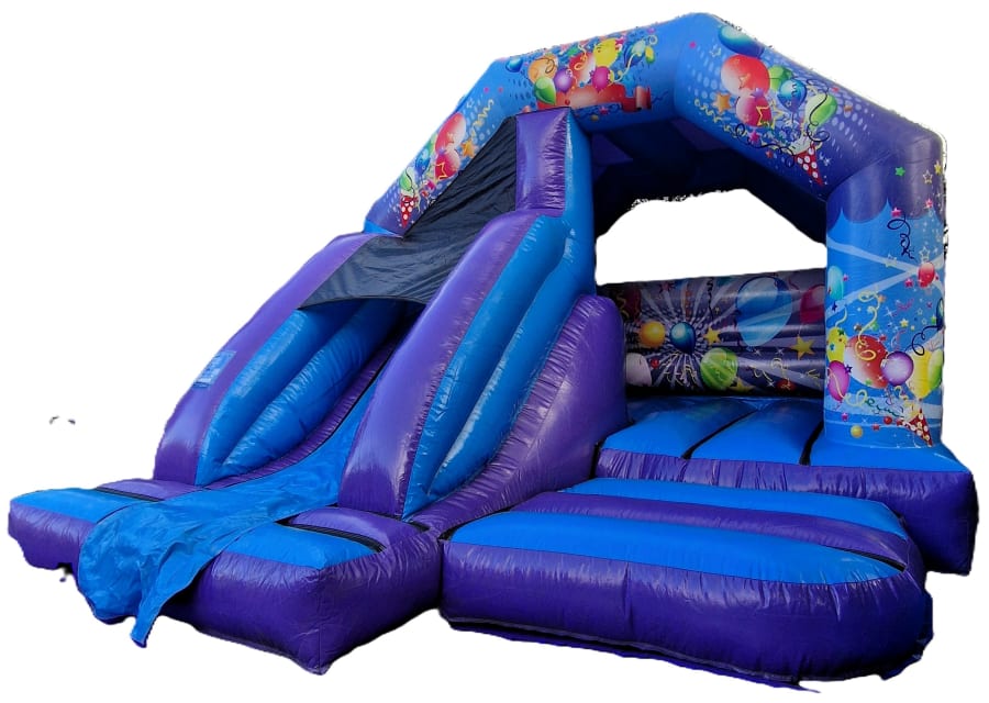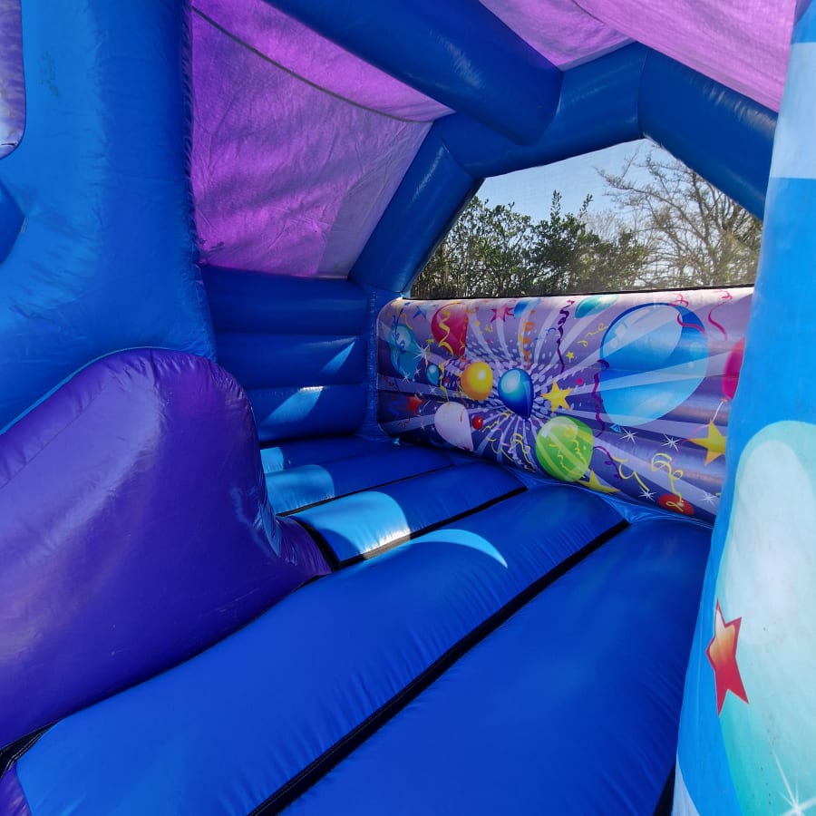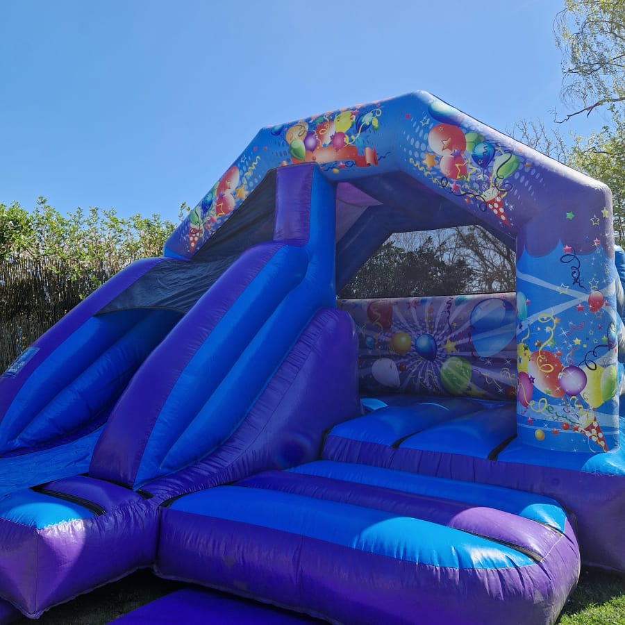 Want a castle that shouts fun from the moment it’s up? Our 15x12ft Party Time Front Slide Combi is one of the most popular hires at A&S Entertainments. With its bright party artwork, roomy bounce area and front-facing slide, it’s a lively choice for birthdays, school events and family celebrations.