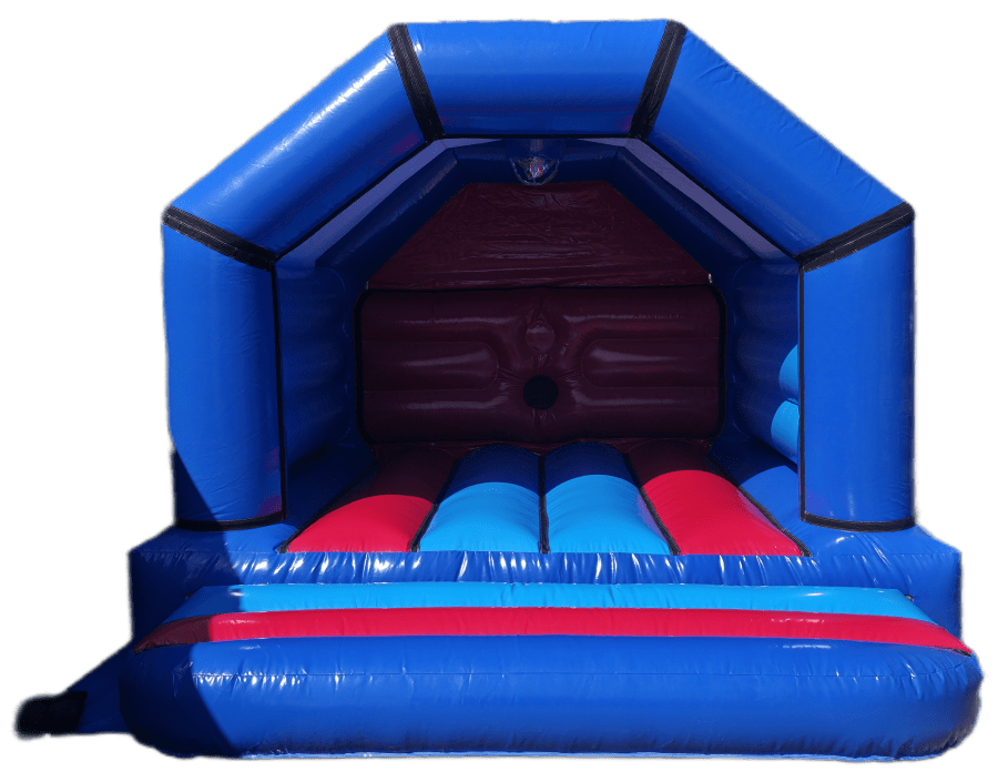 A bold blue and red disco bouncy castle with built-in Bluetooth speakers and LED disco lighting. The 15ft x 12ft size provides a generous bouncing area, making it suitable for medium to large gardens and most community halls.