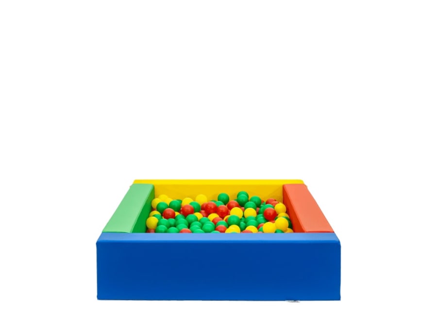 Soft-sided ball pit with multicoloured balls