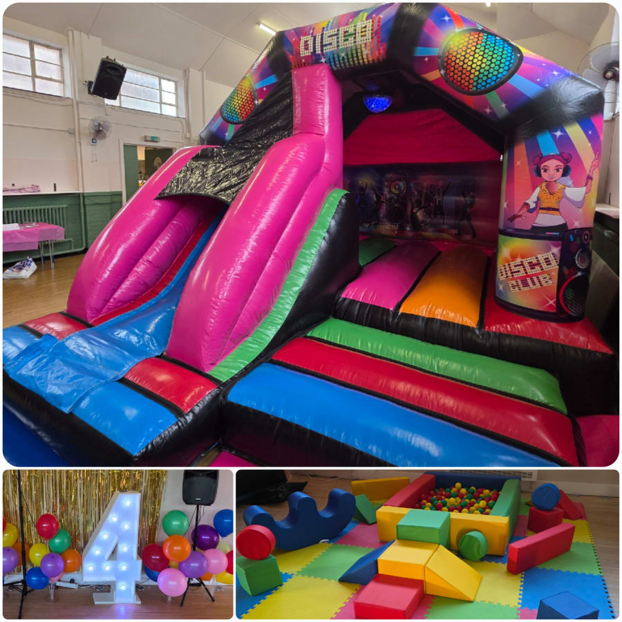 You select your preferred bounce and slide castle, soft play theme and LED number from the available range when booking.