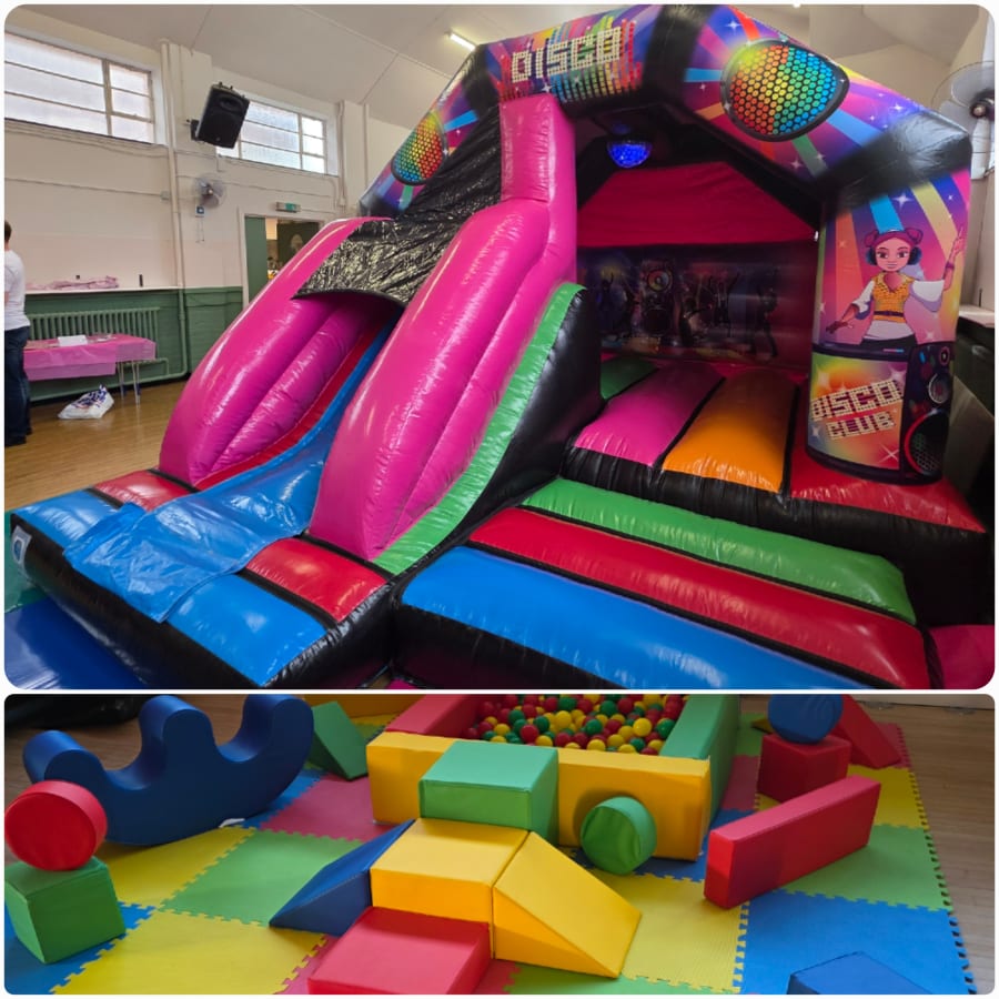 The bounce and slide castle gives children aged 3–12 two activities in one inflatable — bouncing and sliding. The soft play creates a padded, enclosed play zone for babies and toddlers aged 0–3, complete with a ball pit and climbing shapes.